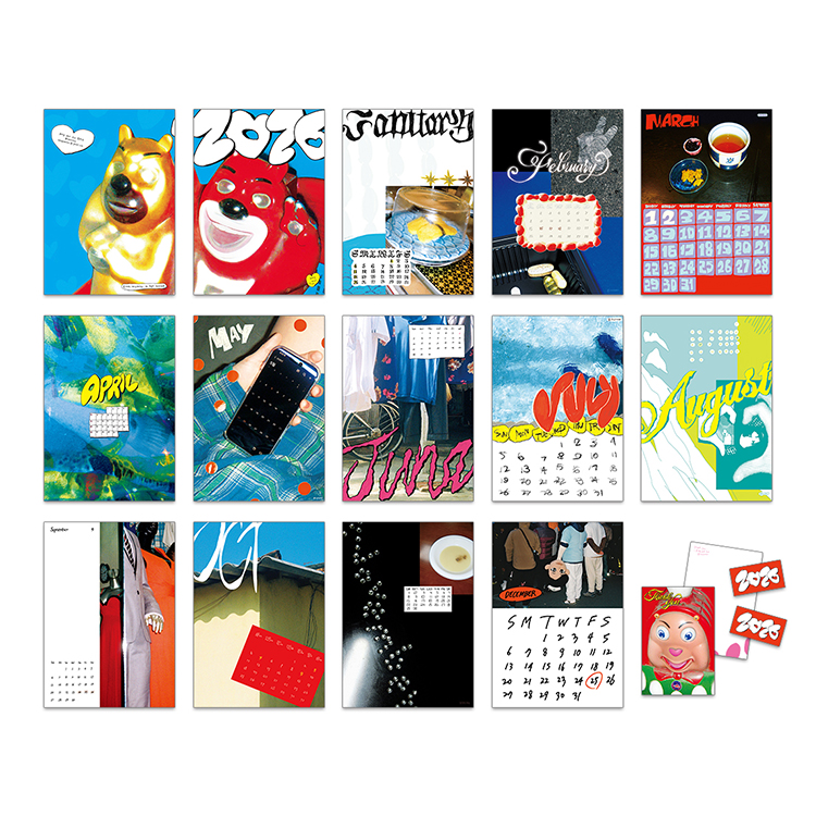 앞, 뒤 커버를 포함해 14장으로 구성되어 있으며, 2025 스티커와 엽서가 포함되어 있습니다.
